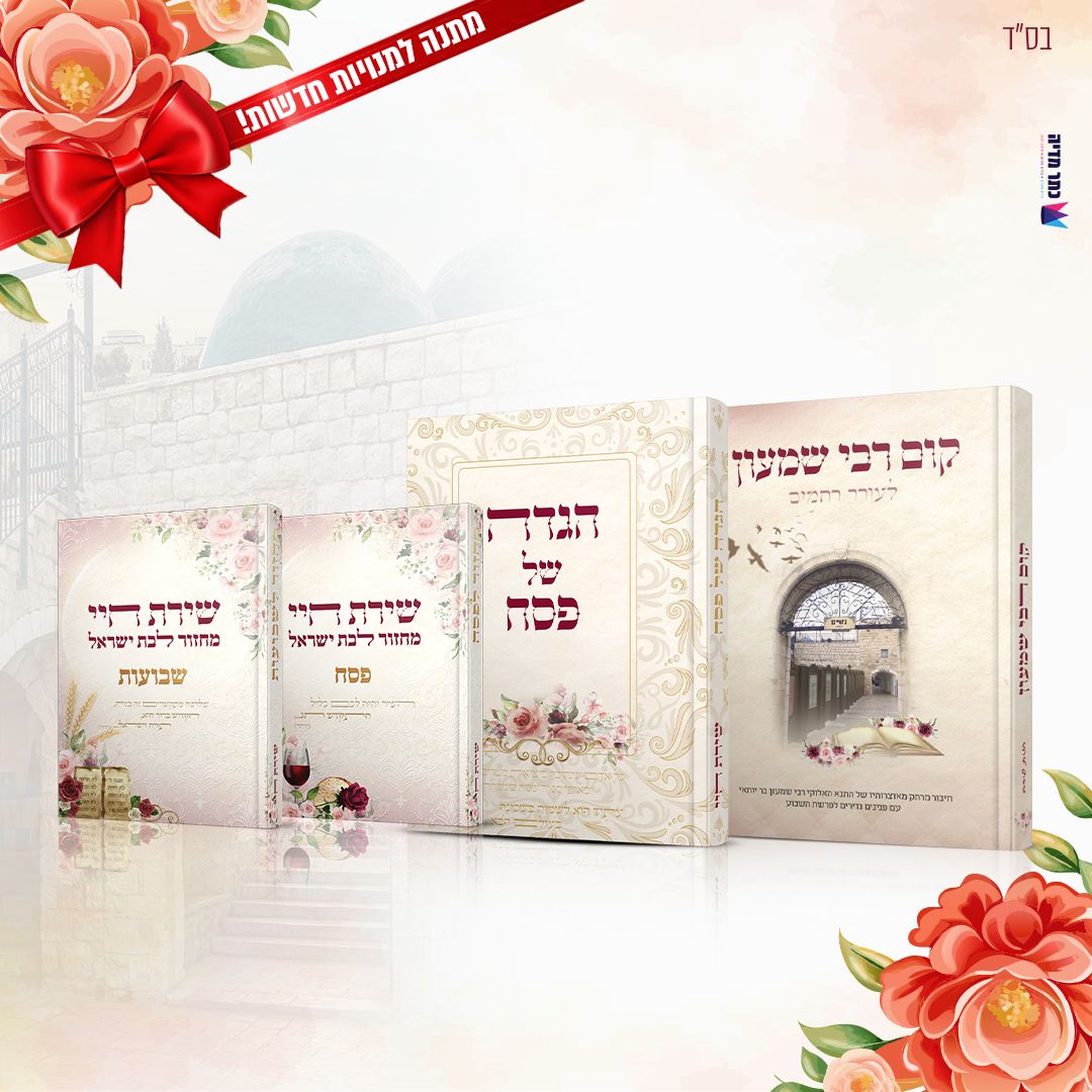 *מארז אביב רוחני – הגדה מעוצבת + קום רבי שמעון + מחזורים לפסח ושבועות